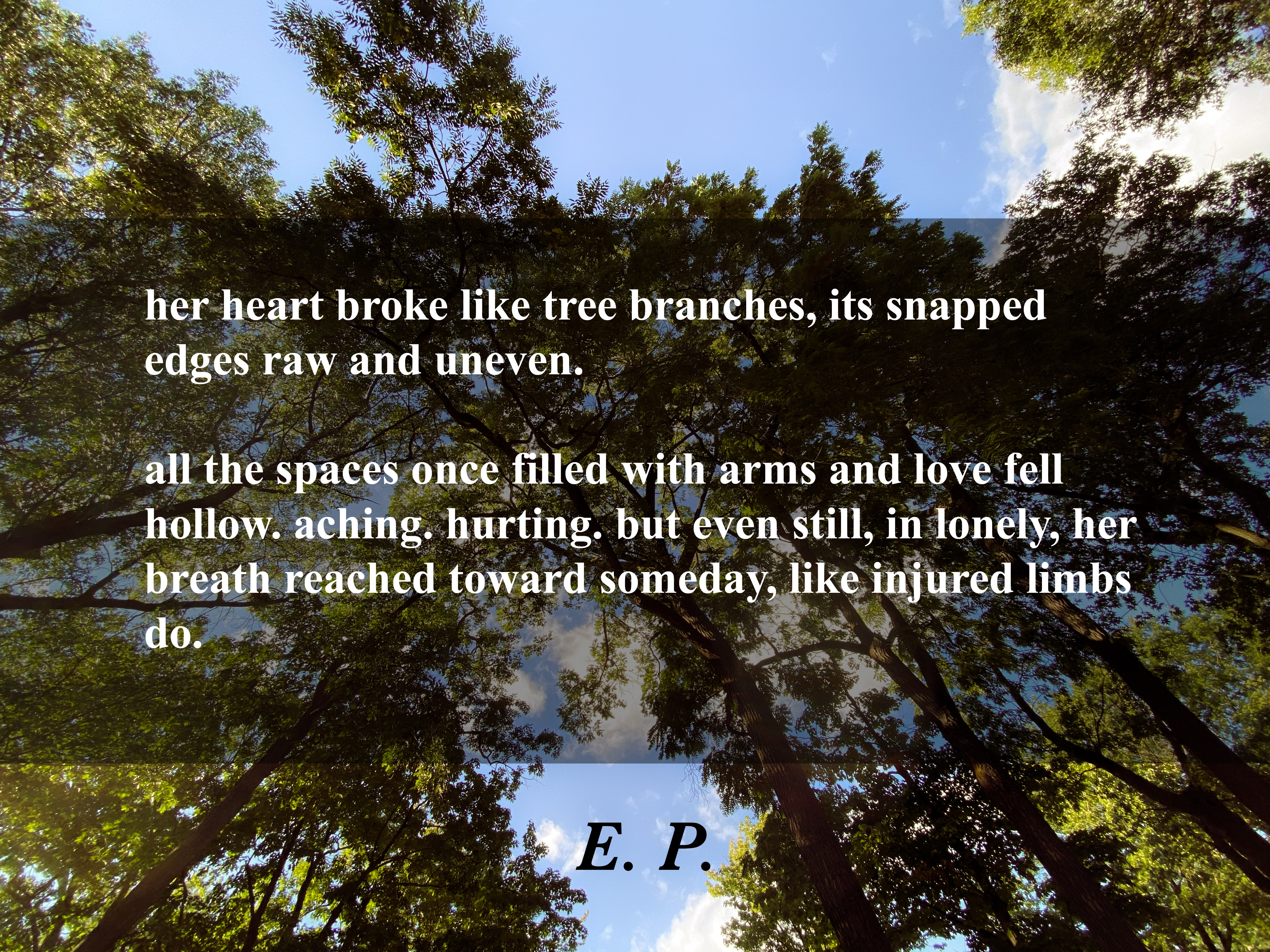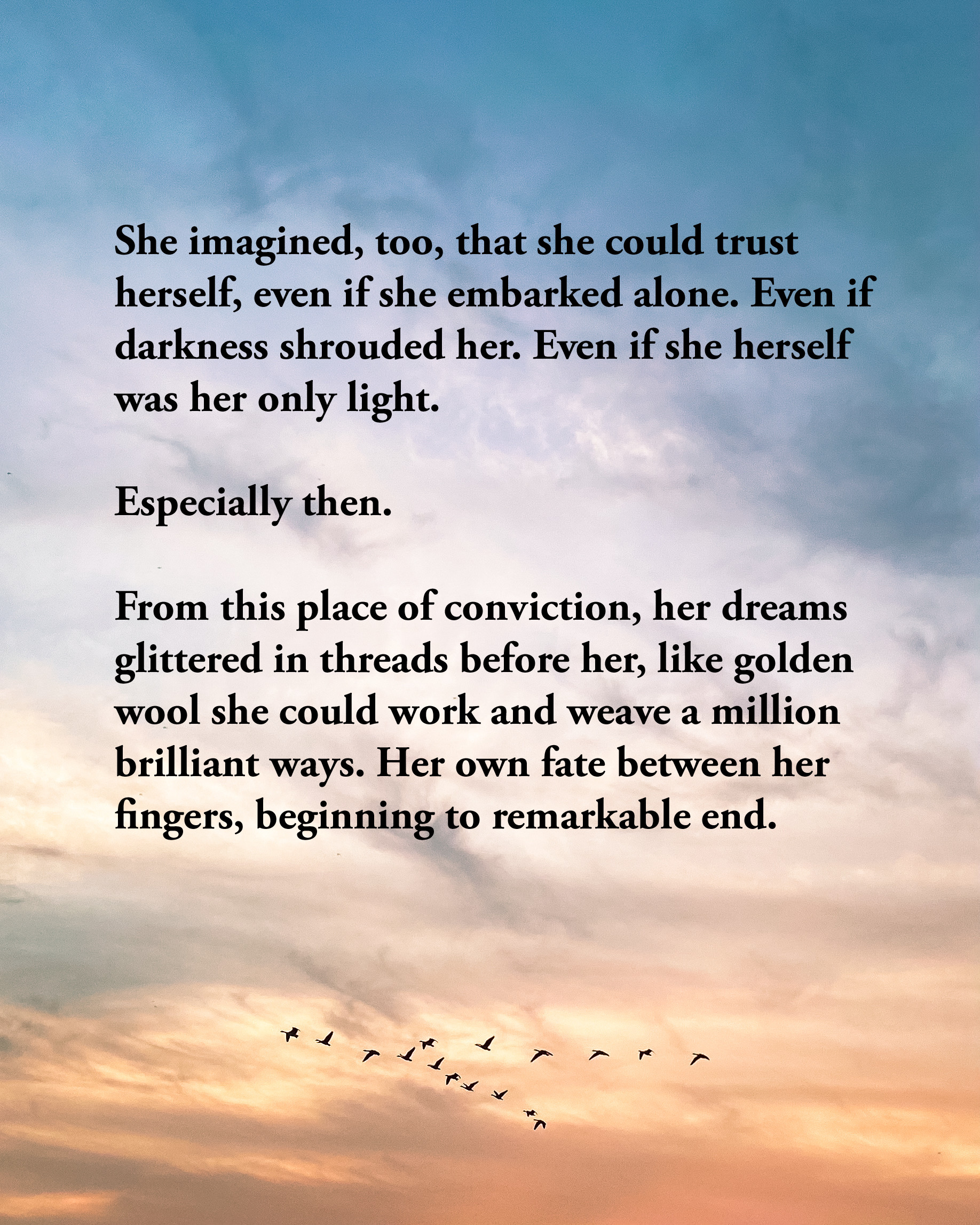 Her heart had always been sure, her feelings as natural as thunder across an electric sky. But even in its splitting, magnetic truth, she let it allude her. She reworded her heart’s only story, too ashamed to listen, and she redefined its very rhythm, too afraid to follow.